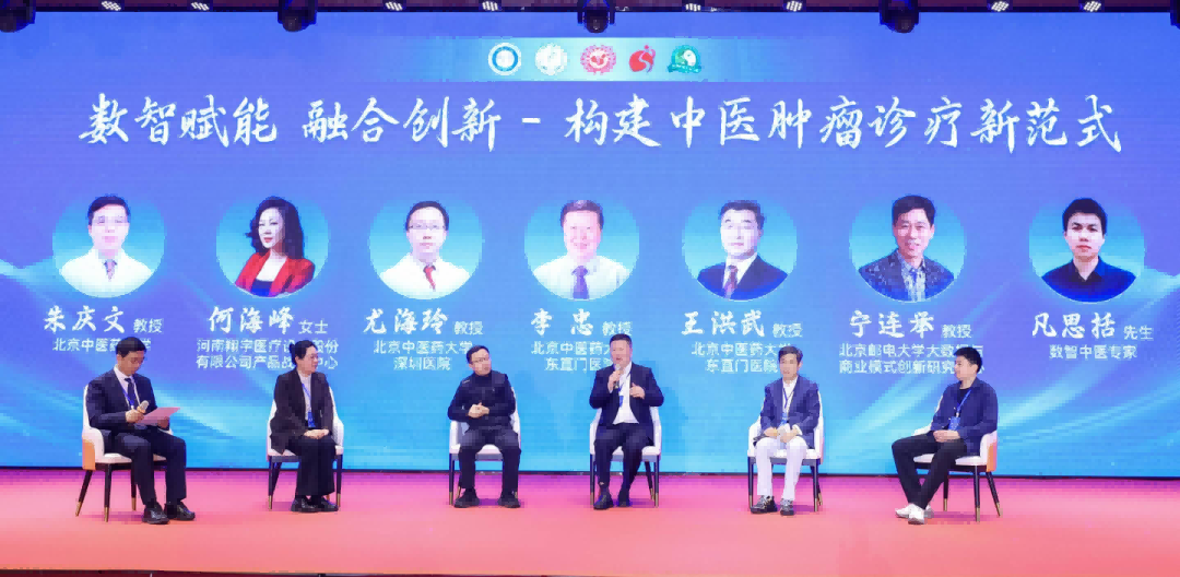 在“首届数智中医肿瘤融合创新交流会”专家交流环节,世界中医药学会联合会肿瘤外治法专业委员会李忠会长、北京中医药大学深圳医院尤海玲教授、北京邮电大学大数据与商业模式创新研究中心宁连举教授、数智中医专家凡思括先生、河南翔宇医疗设备股份有限公司产品战略中心总监何海峰女士从临床实践、数据治理、技术研发、医院管理与产业推动等多个维度开展深入探讨,致力于构建以人为本、数智赋能的中医肿瘤诊疗新范式,为全球肿瘤防治事业贡献中国智慧与中国方案。